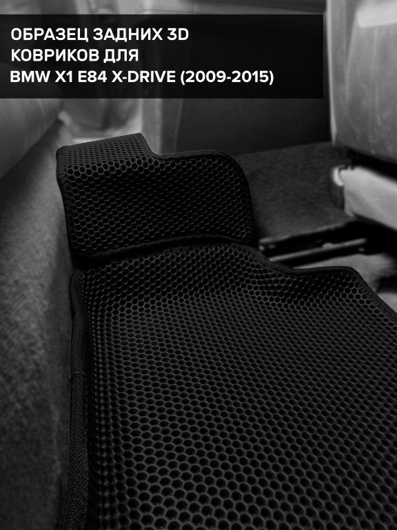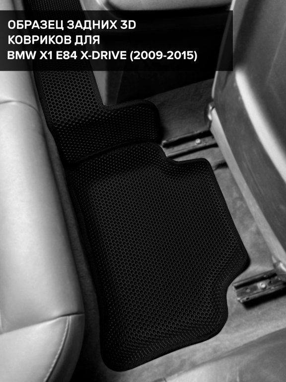 Автомобильные 3д коврики для BMW X1 E84 4WD (2009-2015) в салон авто и багажник сделаны из инновационного полимерного материала EVA, изысканная структура в виде ячеек не дает воде, пыли и снегу разлетаться по салону машины и багажнику. 3д коврики зафиксированы на полу определенными клипсами, соответствующими BMW X1 E84 4WD (2009-2015), и не двигаются в процессе езды.
