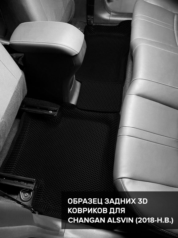 Автомобильные 3д коврики для Changan Alsvin (2018-н.в) в салон авто и багажник сделаны из инновационного полимерного материала EVA, изысканная структура в виде ячеек не дает воде, пыли и снегу разлетаться по салону машины и багажнику. 3д коврики зафиксированы на полу определенными клипсами, соответствующими Changan Alsvin (2018-н.в), и не двигаются в процессе езды.