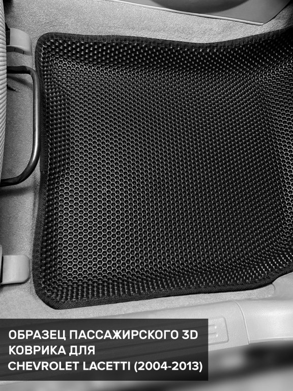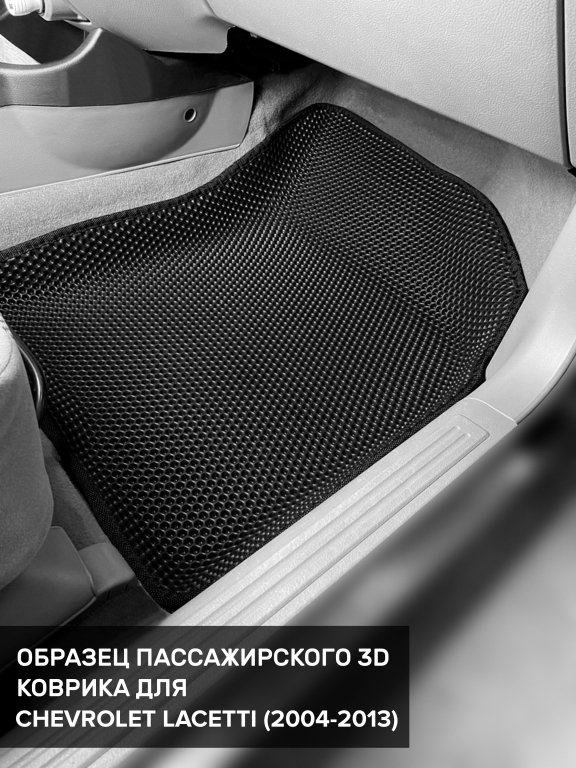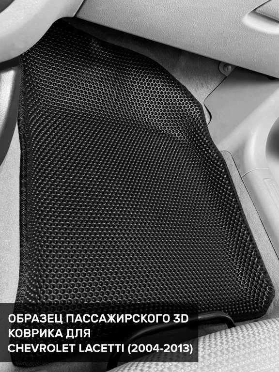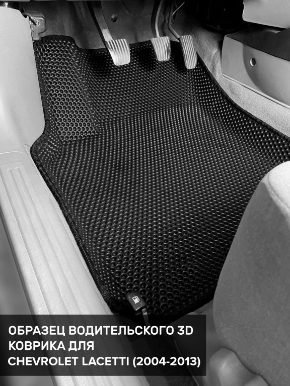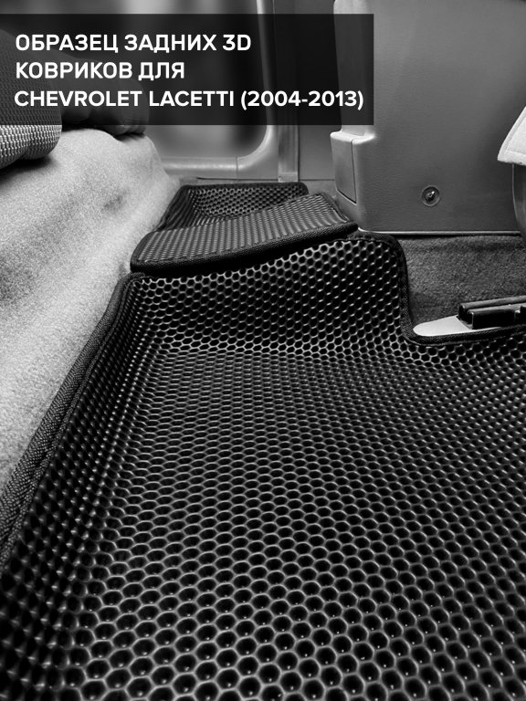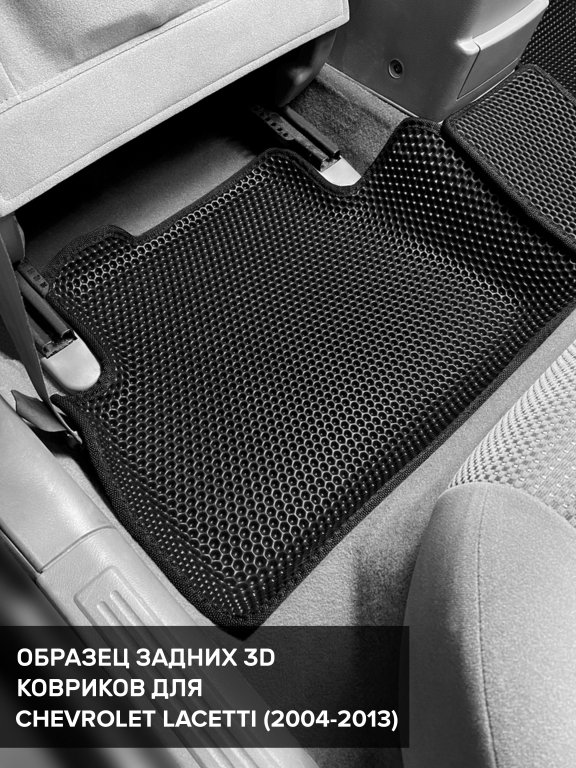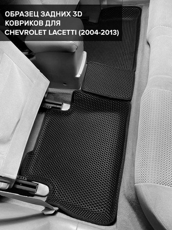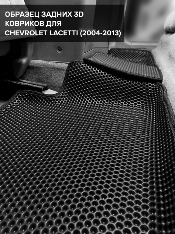 Автомобильные 3д коврики для Chevrolet Lacetti седан, хэтчбек, универсал (2004-2013) в салон авто и багажник сделаны из инновационного полимерного материала EVA, изысканная структура в виде ячеек не дает воде, пыли и снегу разлетаться по салону машины и багажнику. 3д коврики зафиксированы на полу определенными клипсами, соответствующими Chevrolet Lacetti седан, хэтчбек, универсал (2004-2013), и не двигаются в процессе езды.