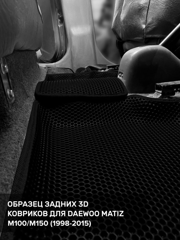 Автомобильные 3д коврики для Daewoo Matiz M100/M150 (1998-2015) в салон авто и багажник сделаны из инновационного полимерного материала EVA, изысканная структура в виде ячеек не дает воде, пыли и снегу разлетаться по салону машины и багажнику. 3д коврики зафиксированы на полу определенными клипсами, соответствующими Daewoo Matiz M100/M150 (1998-2015), и не двигаются в процессе езды.