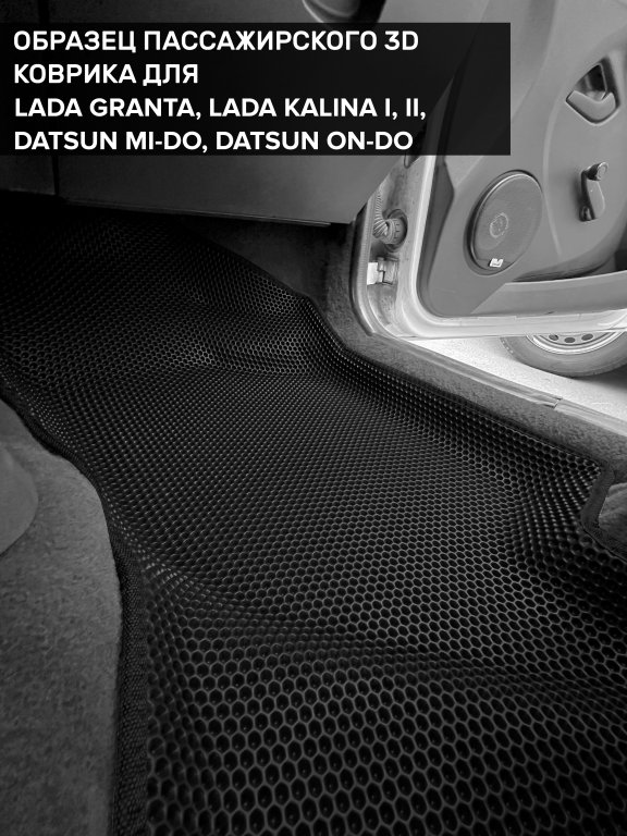 Автомобильные 3д коврики для Datsun mi-DO (2015-2020) в салон авто и багажник сделаны из инновационного полимерного материала EVA, изысканная структура в виде ячеек не дает воде, пыли и снегу разлетаться по салону машины и багажнику. 3д коврики зафиксированы на полу определенными клипсами, соответствующими Datsun mi-DO (2015-2020), и не двигаются в процессе езды.