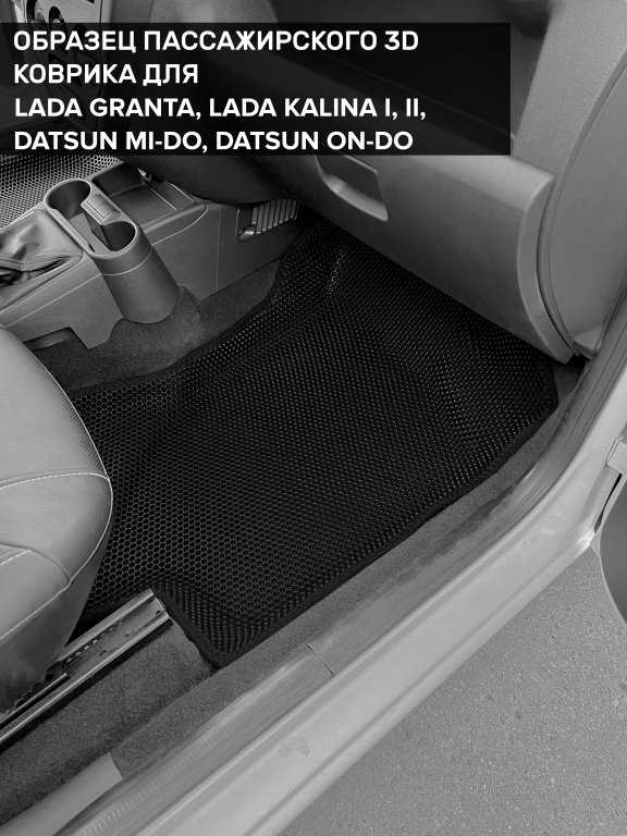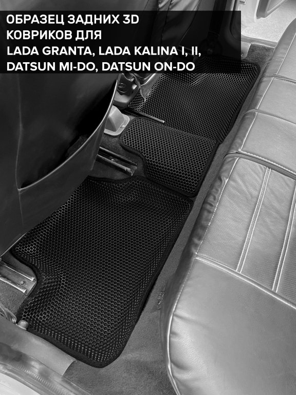 Автомобильные 3д коврики для Datsun on-DO (2014-2020) в салон авто и багажник сделаны из инновационного полимерного материала EVA, изысканная структура в виде ячеек не дает воде, пыли и снегу разлетаться по салону машины и багажнику. 3д коврики зафиксированы на полу определенными клипсами, соответствующими Datsun on-DO (2014-2020), и не двигаются в процессе езды.