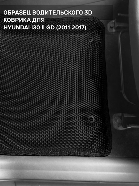 Автомобильные 3д коврики для Hyundai i30 II GD (2011-2017) в салон авто и багажник сделаны из инновационного полимерного материала EVA, изысканная структура в виде ячеек не дает воде, пыли и снегу разлетаться по салону машины и багажнику. 3д коврики зафиксированы на полу определенными клипсами, соответствующими Hyundai i30 II GD (2011-2017), и не двигаются в процессе езды.