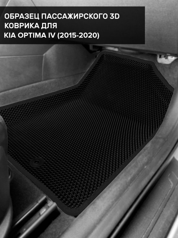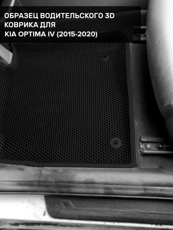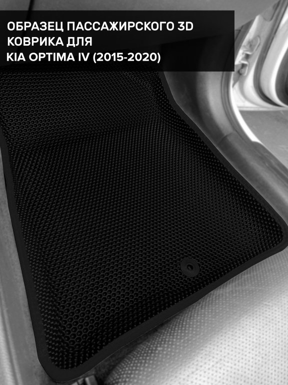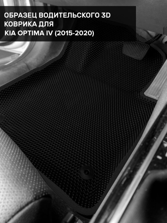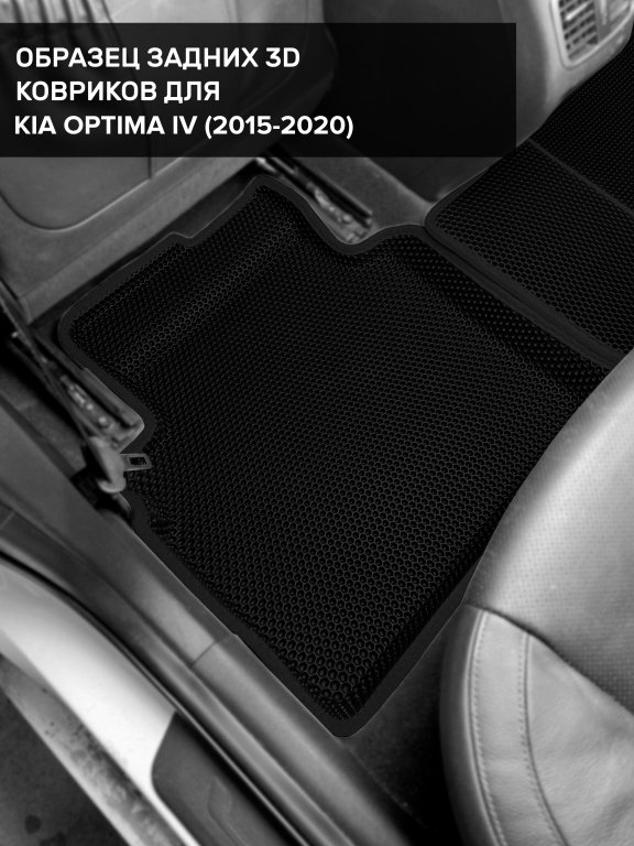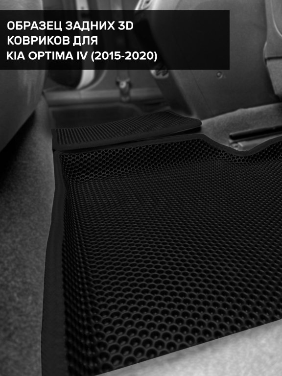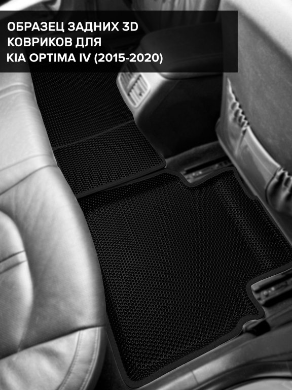 Автомобильные 3д коврики для Kia Optima IV (2015-2020) в салон авто и багажник сделаны из инновационного полимерного материала EVA, изысканная структура в виде ячеек не дает воде, пыли и снегу разлетаться по салону машины и багажнику. 3д коврики зафиксированы на полу определенными клипсами, соответствующими Kia Optima IV (2015-2020), и не двигаются в процессе езды.