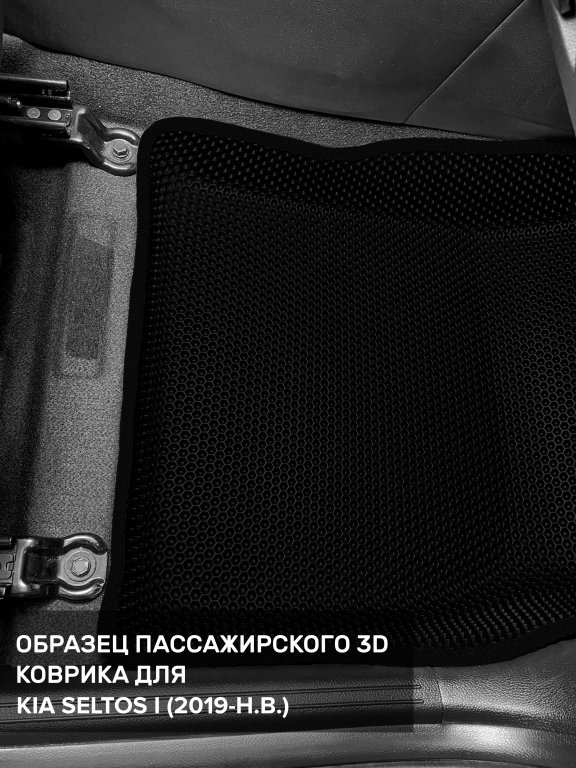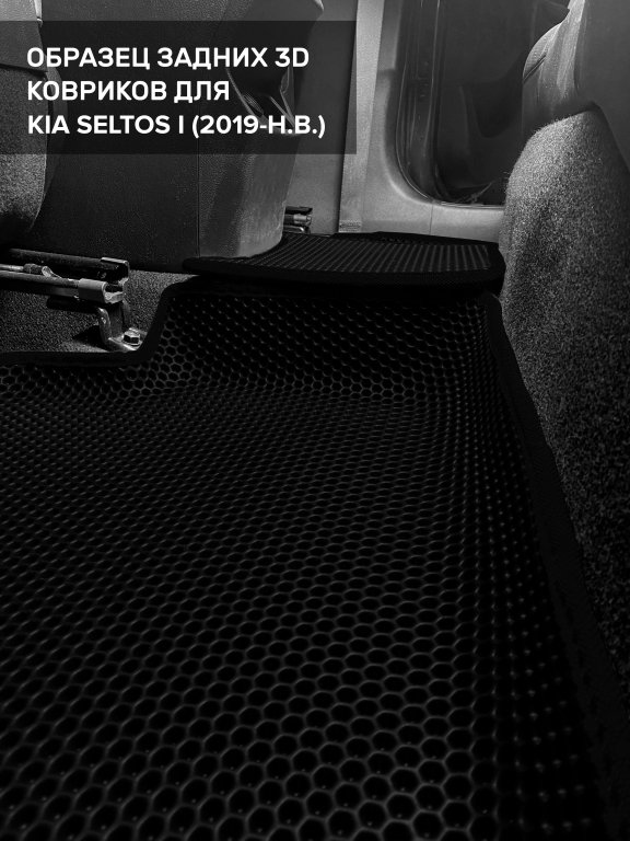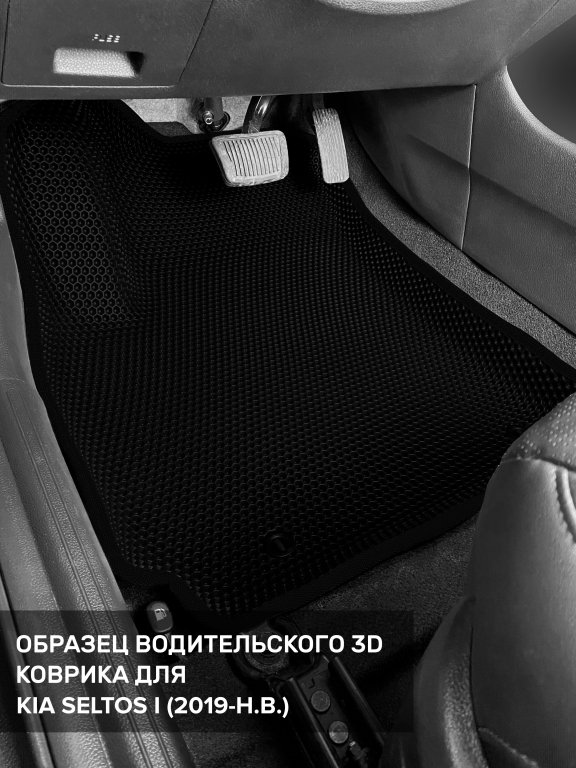 Автомобильные 3д коврики для Kia Seltos I (2019-н.в.) в салон авто и багажник сделаны из инновационного полимерного материала EVA, изысканная структура в виде ячеек не дает воде, пыли и снегу разлетаться по салону машины и багажнику. 3д коврики зафиксированы на полу определенными клипсами, соответствующими Kia Seltos I (2019-н.в.), и не двигаются в процессе езды.