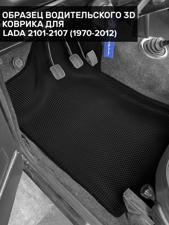 Автомобильные 3д коврики для Lada 2101, 2102, 2103, 2104, 2105, 2106, 2107 (1970-2012) в салон авто и багажник сделаны из инновационного полимерного материала EVA, изысканная структура в виде ячеек не дает воде, пыли и снегу разлетаться по салону машины и багажнику. 3д коврики зафиксированы на полу определенными клипсами, соответствующими Lada 2101, 2102, 2103, 2104, 2105, 2106, 2107 (1970-2012), и не двигаются в процессе езды.