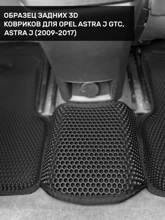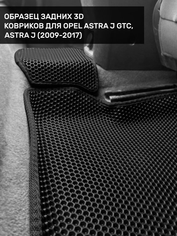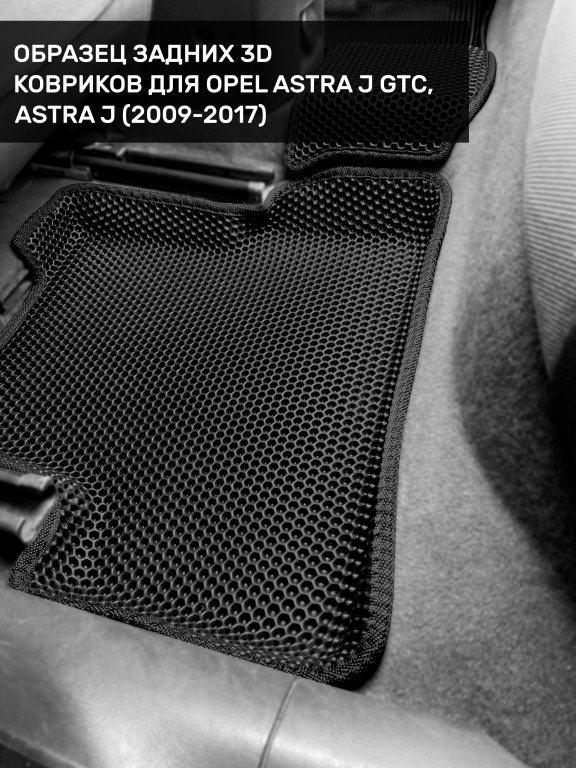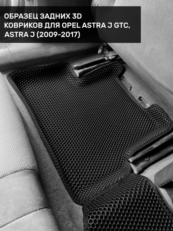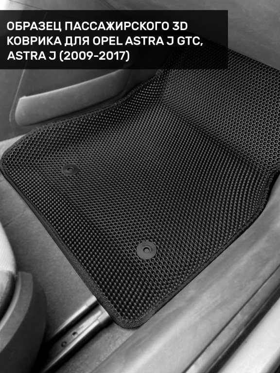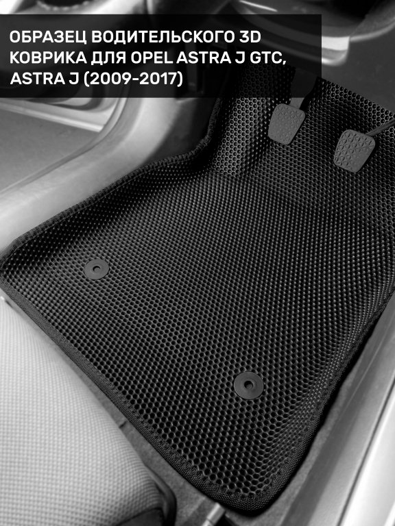 Автомобильные 3д коврики для Opel Astra J седан, хэтчбек, универсал (2009-2018) в салон авто и багажник сделаны из инновационного полимерного материала EVA, изысканная структура в виде ячеек не дает воде, пыли и снегу разлетаться по салону машины и багажнику. 3д коврики зафиксированы на полу определенными клипсами, соответствующими Opel Astra J седан, хэтчбек, универсал (2009-2018), и не двигаются в процессе езды.