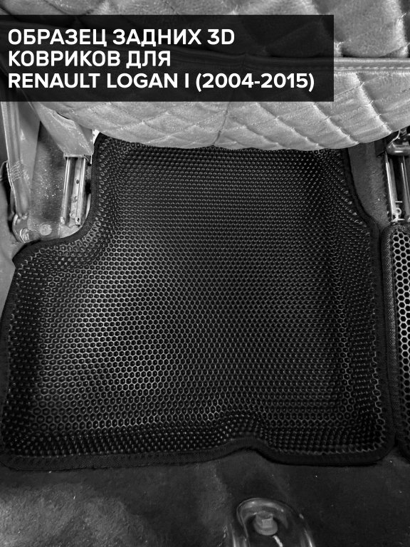Автомобильные 3д коврики для Renault Logan I (2004-2015) в салон авто и багажник сделаны из инновационного полимерного материала EVA, изысканная структура в виде ячеек не дает воде, пыли и снегу разлетаться по салону машины и багажнику. 3д коврики зафиксированы на полу определенными клипсами, соответствующими Renault Logan I (2004-2015), и не двигаются в процессе езды.