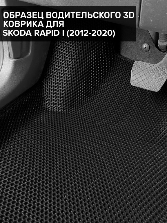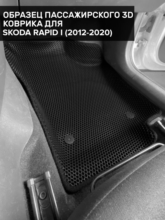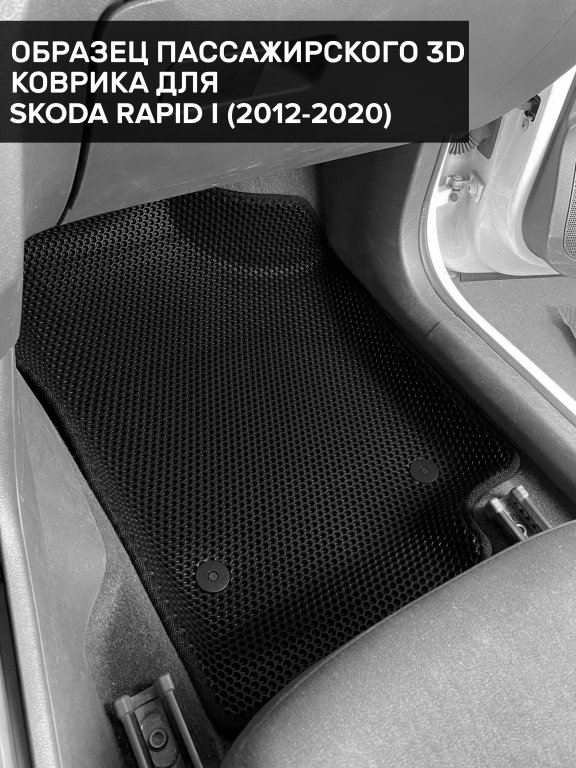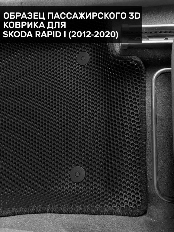 Автомобильные 3д коврики для Skoda Rapid I (2012-2020) в салон авто и багажник сделаны из инновационного полимерного материала EVA, изысканная структура в виде ячеек не дает воде, пыли и снегу разлетаться по салону машины и багажнику. 3д коврики зафиксированы на полу определенными клипсами, соответствующими Skoda Rapid I (2012-2020), и не двигаются в процессе езды.